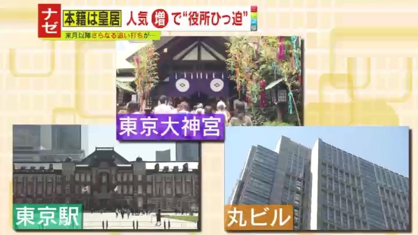 今、「皇居などの有名スポットを本籍にしたい」という申し込みが殺到し、ランドマークを多く持つ東京・千代田区では、区役所の業務に支障をきたす事態になっています。急増のきっかけは?『本籍地』に一体、何が―。