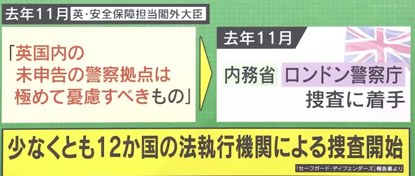 世界各国では、すでに秘密警察への対応が進んでいます。オランダメディアが「海外警察を欧州にいる反体制派を黙らせるためにも利用している」と報じると、オランダ政府は「非公式な警察拠点の存在は違法」として2022年12月に封鎖を発表しました。また、2022年11月にはイギリスでも「英国内の未申告の警察拠点は極めて憂慮すべき」として、ロンドン警察庁が捜査に着手しました。少なくとも12か国の法執行機関による捜査が始まっています。