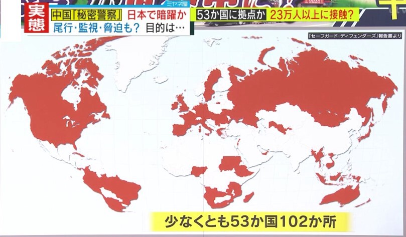 中国・外務省の報道官は「事実根拠が皆無」として、秘密警察の存在を否定しましたが、世界中に展開しているとされています。スペインの人権団体「セーフガード・ディフェンダーズ」によると、拠点は53か国102か所にも及ぶといいます。