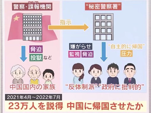「この“自主的な帰国”というのは非常に不自然で、ひょっとしたら“自主的な帰国”の前段階で監視や脅迫などがあったのではといわれています。その延長線上で反政府的な言動をする人たちもターゲットとして加わり、現在、表面化している問題につながるのではとみられています」