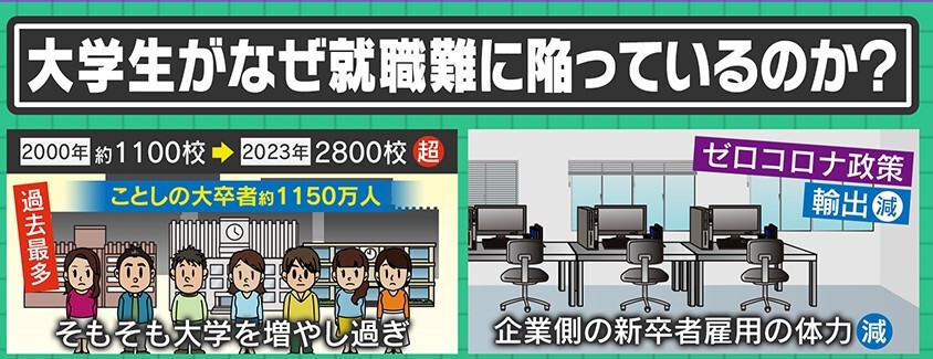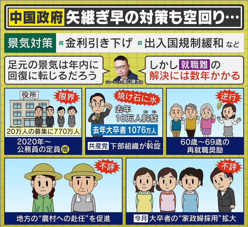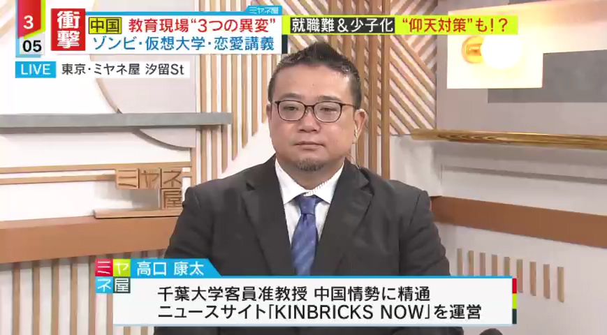 「私も日本の就職氷河期世代ですが、そのときも就職先が見つからないので大学院に行こうという人がたくさんいましたが、中国も同じような感じです。さらに中国の大学は、共産党に厳しくコントロールされていて、良い報告を上げなければならないので、就職実績も高くしないといけないということもあります。自分の不用品を中古品販売サービスなどで売買していたのを、『君はそれで就職したことにしなさい』と学生に就職の報告をさせて、大学側も低い就職率を隠そうとしていたことが、最近話題になっていました」
