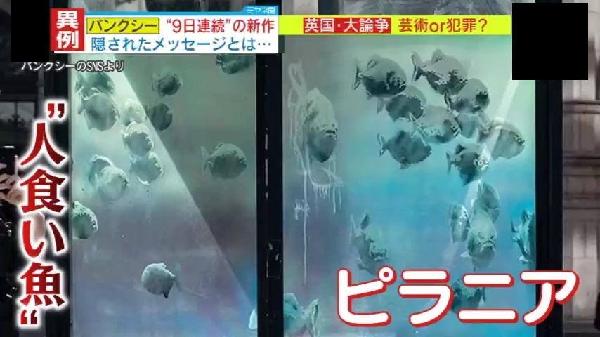最初の作品の登場から1週間経った7日目には、“人食い魚”として有名な肉食の魚『ピラニア』が街中に登場。中に入ると、「まるで水族館にいるような気分になれる」と多くの人が集まりました。
