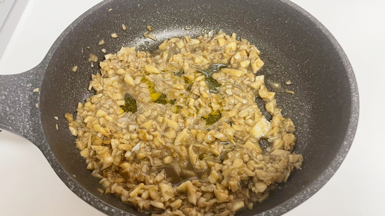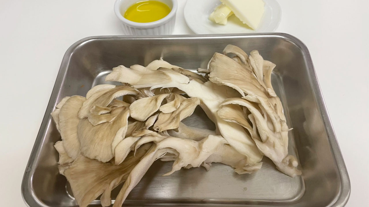 ・まいたけ 1パック・トリュフオイル 大さじ2〜3・バター 20g・オイスターソース 20cc・水 40cc・塩胡椒 適量