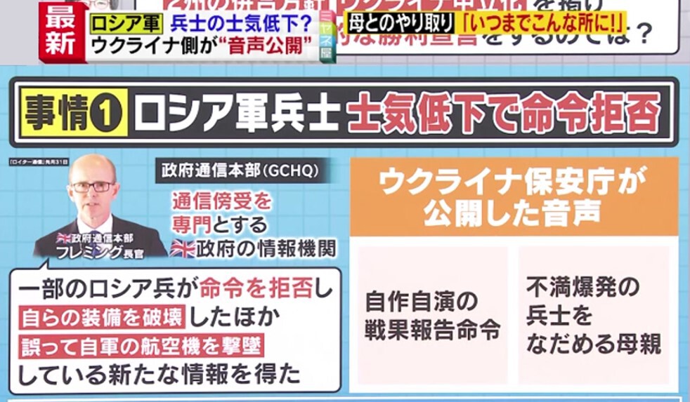 Q.「クレムリン5段階作戦」を見ても、もっと早く終わる予定だったものが、極寒のウクライナに侵攻し、恐らく食料や水、燃料もままならない中で、士気が下がっているのは当然ですよね?