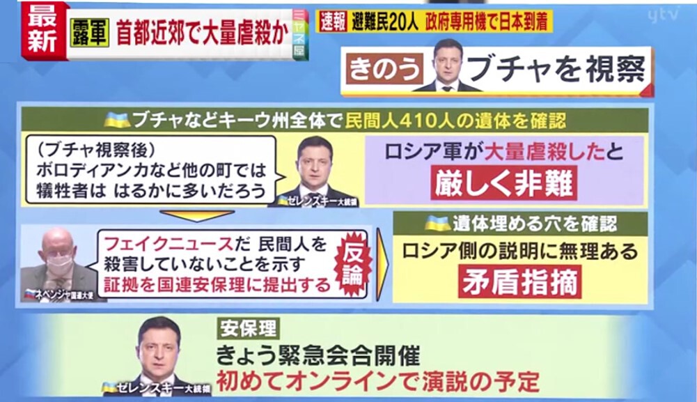 「おっしゃる通りで、この21世紀の情報化社会で、これだけ明確な証拠があります。これは国際調査チームが現地で調べると思いますが、それを覆すということはとてもできないので、ロシアの方が『フェイクニュース』をこれから作っていくと思います」