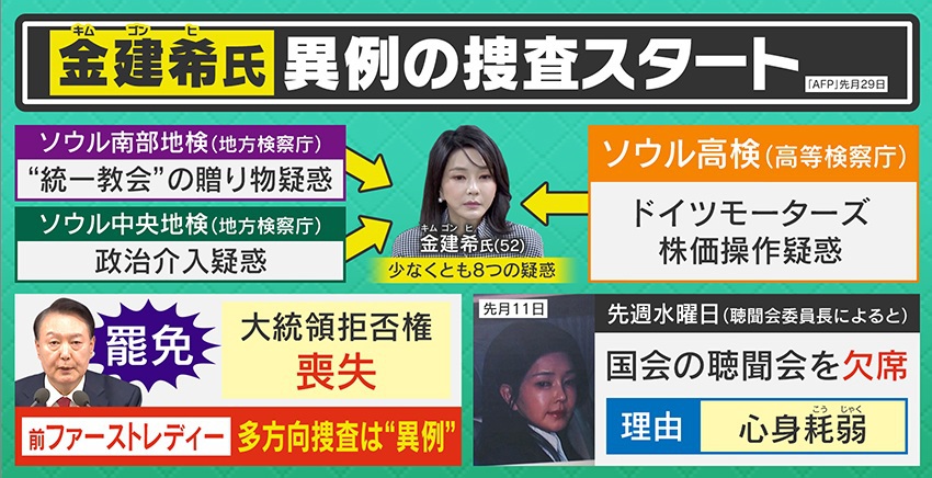 「これまでは、ユン前大統領が拒否権を発動し、キム夫人は捜査対象から外れていたんです。でも、もう“ただの人”になったので、検察からすると、いつでも出頭させることができる。3つの捜査機関が競って、誰が先にキム夫人に手錠をかけるか、起訴するのかという時間との戦いになっている。今後、容疑が固まれば、参考人じゃなくて、容疑者としてキム夫人を逮捕するという方向に、今は流れています」