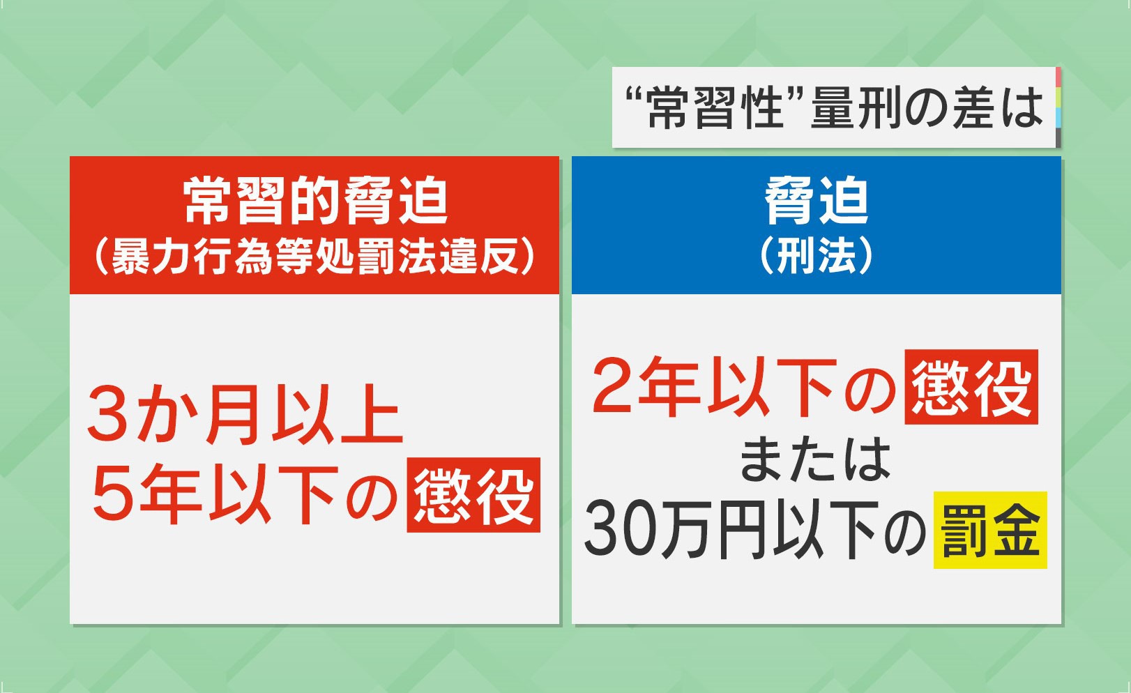 Q.(常習性脅迫が認められると)場合によっては実刑もあり得るのですか?