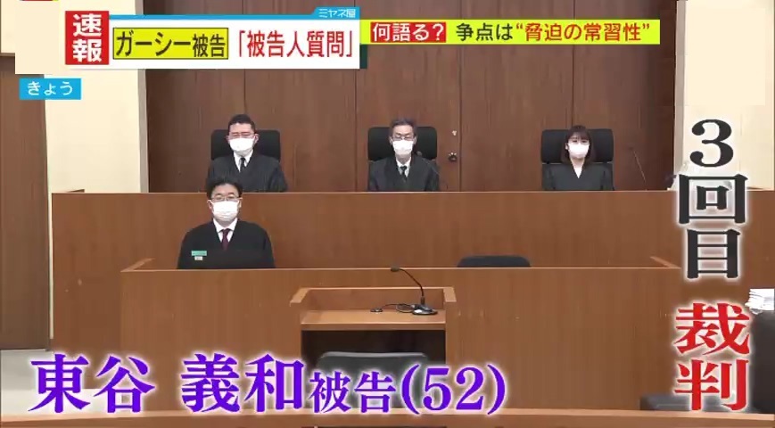 問われている「常習的脅迫」についての話はなかったのですが、証言の中で「全て、そのときの感情に任せて激高する感じで、あのように喋ってしまった。関係のないことまで、喧嘩をするような感じで喋ってしまった」と、「常習的」ではなく「突発的」だといいたいかのような印象でした。
