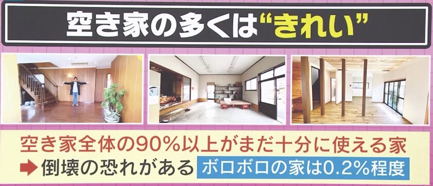 実は、空き家全体の90%以上がまだ十分に使える家で、倒壊の恐れがある「特定空き家」に指定されているようなボロボロの家は、0.2%程度だといいます。