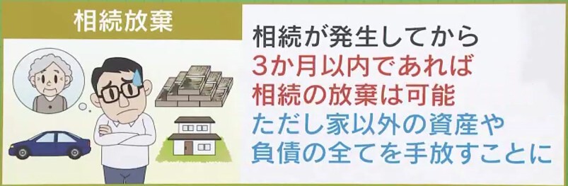 よく聞く「相続放棄」も、相続が発生してから3か月以内であれば可能ですが、「家だけ」は相続放棄できず、家以外の資産や負債の全てを手放すことになります。