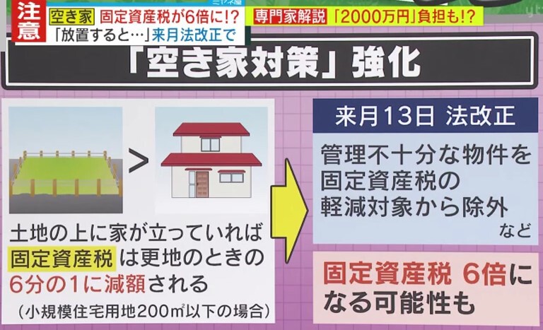 日本全国で増加の一途を辿る「空き家問題」。2023年12月に法律が改正され、空き家を放置していると、税金が6倍になる恐れも…。空き家活用株式会社・和田貴充CEOの解説です。