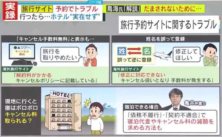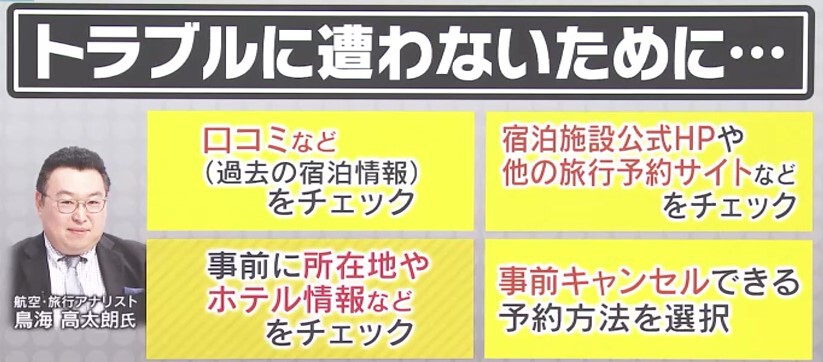 「最近は、日本でも“民泊”が合法的に認められるようになりました。今回のケースは、ホテルのようにフロントにずっと人がいるわけではない『家主不在型』という形でしたが、インバウンドで物件数も増えている中で、予約サイト側が物件のチェックをしていなかったことが一番大きな問題だと思います。以前は、旅行業に登録している旅行会社を通して宿を取っていて、不正を犯せば免許取り消しになって、旅行会社として営業できなくなっていたので、絶対にこんなトラブルは起きませんでした。今は宿泊予約サイトを使うようになり、インターネット時代になったことで決済もネットでできてしまい、日本の法律の及ばない外国に本社がある予約サイトが出てきたことで、ずさんな“登録作業”ができてしまいます。日本の大手旅行サイトは旅行業に登録していて、こんな詐欺に近い内容をチェックせずに提供していたとなると、行政処分が出るレベルです」