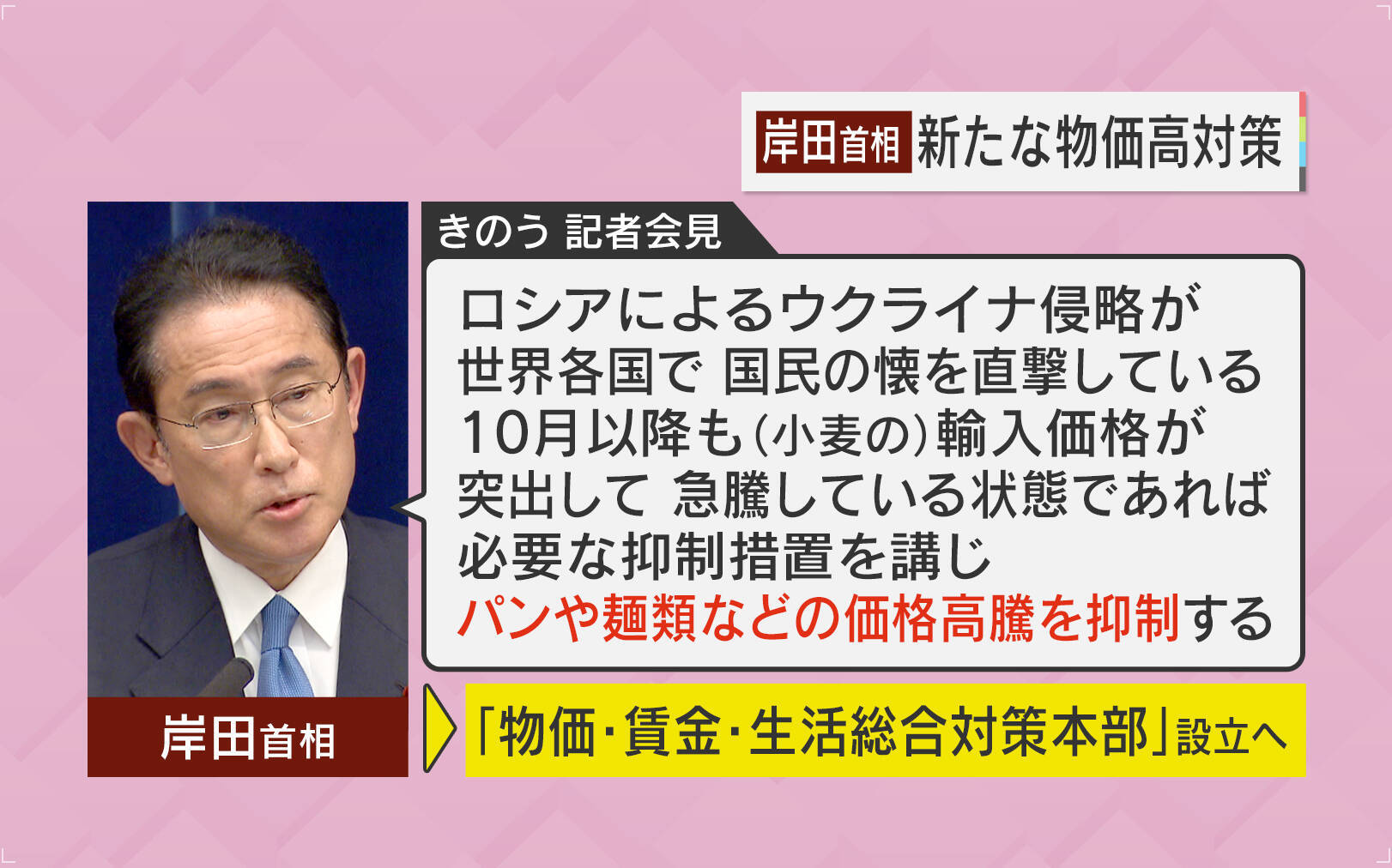 我々の生活が厳しくなっている中、政府は4月に緊急経済対策を打ち出し、原油元売りへの補助や、低所得の子育て世帯に補助金の支給を行いました。6月15日には岸田総理が「10月以降も(小麦の)輸入価格が突出して急騰している状態であれば、パンや麺類などの価格高騰を抑制する」として「物価・賃金・生活総合本部の設立」を表明しました。