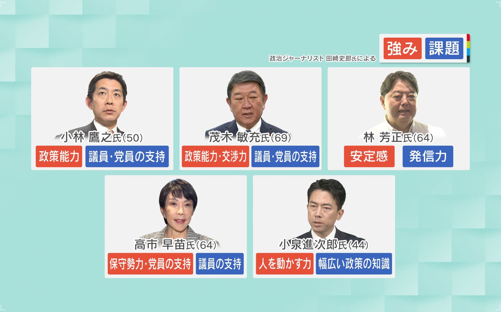 ■5人の強みと課題 田中氏が「この方!」と言う候補者は?