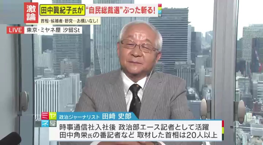 【喝!】「この方しかいません」田中眞紀子氏が総裁選を斬る!!誰が新総裁に相応しい?首相・候補者お構いなし、本音で激論