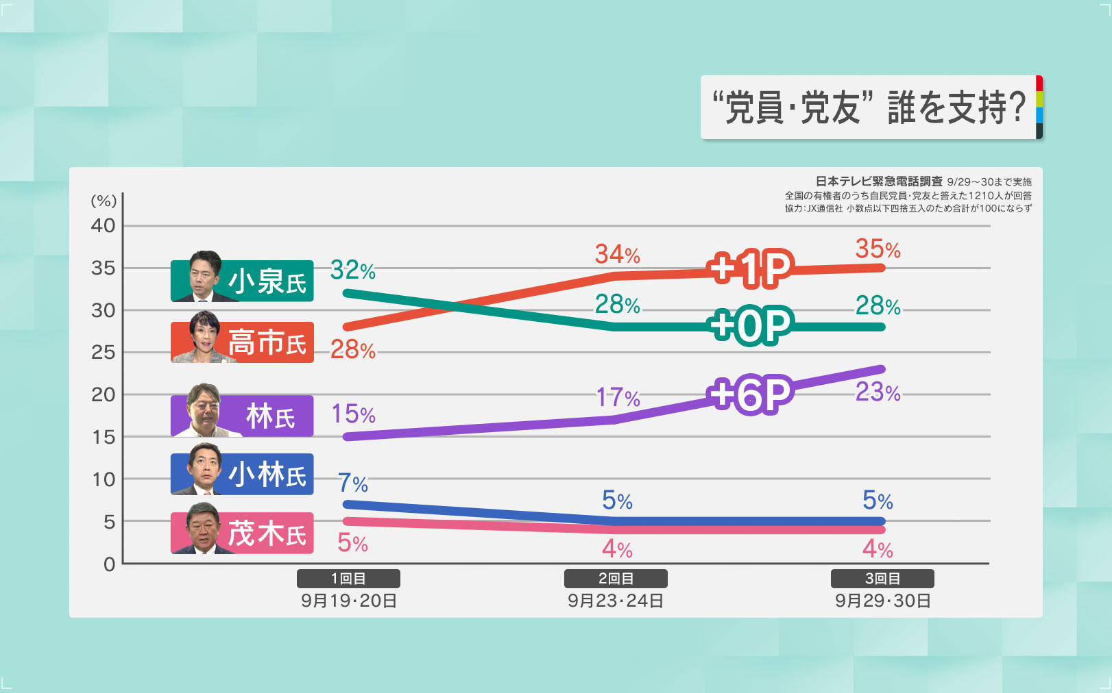 Q.総裁選の投票先を見ると、高市氏と小泉氏がリードしていますが、ここに来て林氏が伸びてきています。この3人で決選投票になるのは間違いないですか?