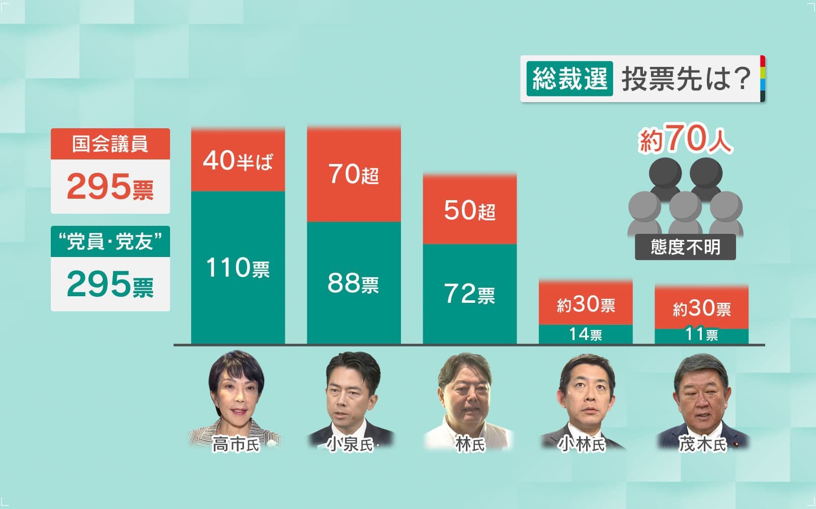 「小泉氏が進出するのはほぼ間違いないので、小泉氏対高市氏になるか、小泉氏対林氏になるか、という構図です。決選投票には確実になります」