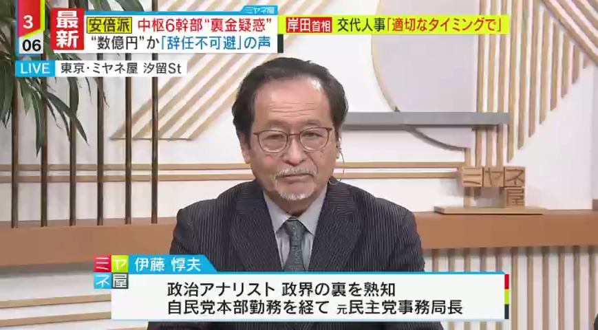「『なんで先にそんなこと言うんだ。なんで首切るんだ。結果が出てからでいいじゃないか』と当事者は思っている可能性が高いと思います。ただ岸田首相としては、世論調査もあって支持率はさらに下がると思います。そうなると政権の先行きまで怪しくなってきます。であるならば、世間に向けてのアピールとして安倍派をぶった切るという思いが強いので、その辺りがぶつかり合っている状況だと思います」