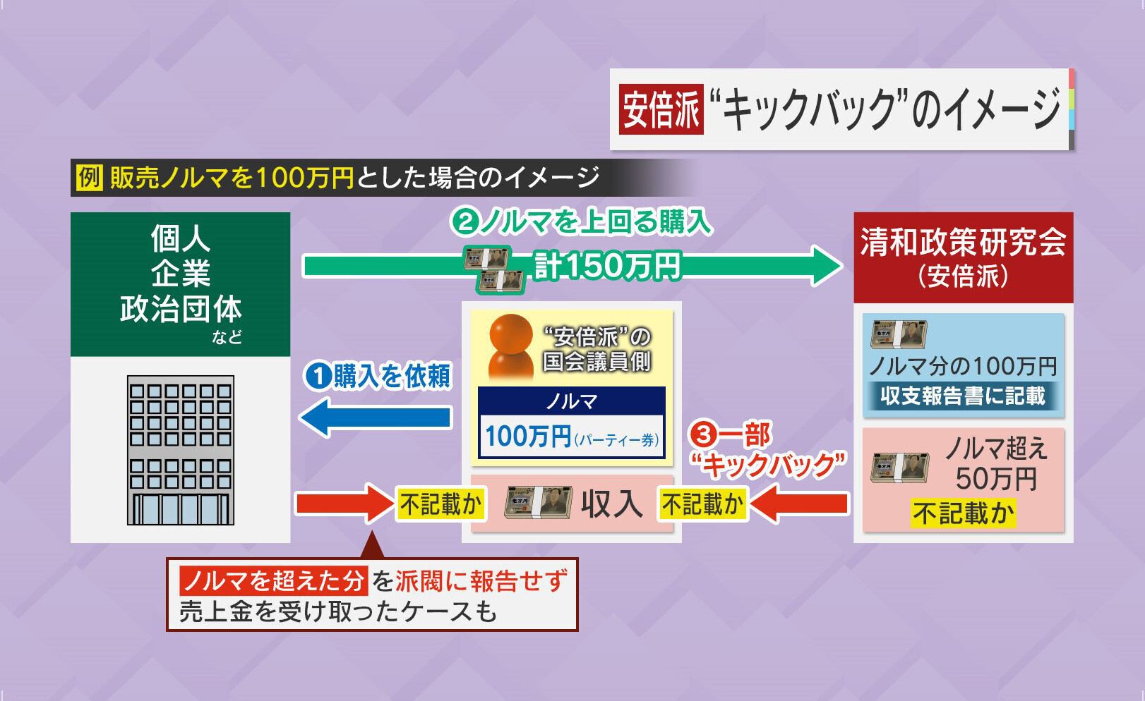 「見方を変えると、安倍派の場合はノルマを超えてパーティー券を売った人は、ほぼすべてキックバックを受けていたのではないかという疑念がわいてきます」