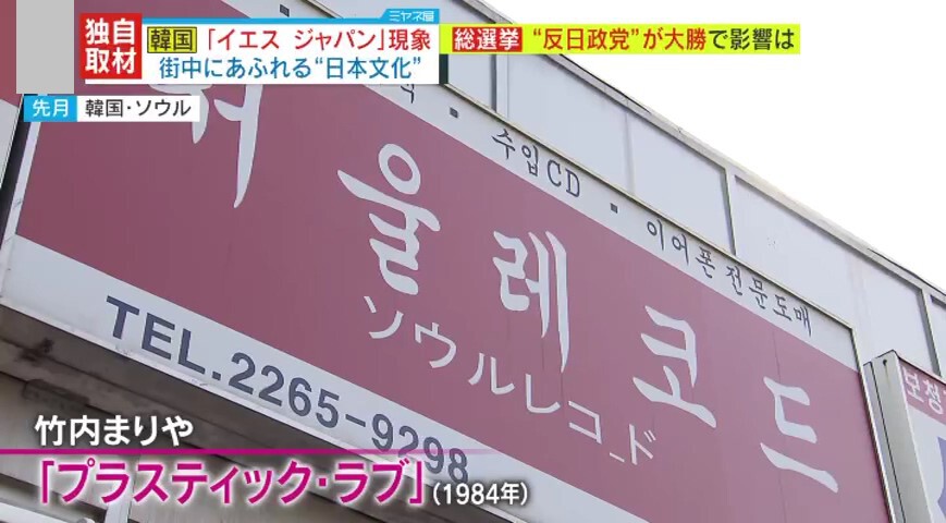 2024年4月10日に韓国で行われた総選挙では、尹錫悦(ユン・ソンニョル)政権を支える与党は惨敗、“反日”を掲げる最大野党が圧勝という結果に…。そんな韓国では今、若者を中心に“日本ブーム”が。日本のドラマやアニメのほか、昭和のシティーポップなどが大人気。『イエスジャパン』と呼ばれる現象を、現地で独自取材しました。
