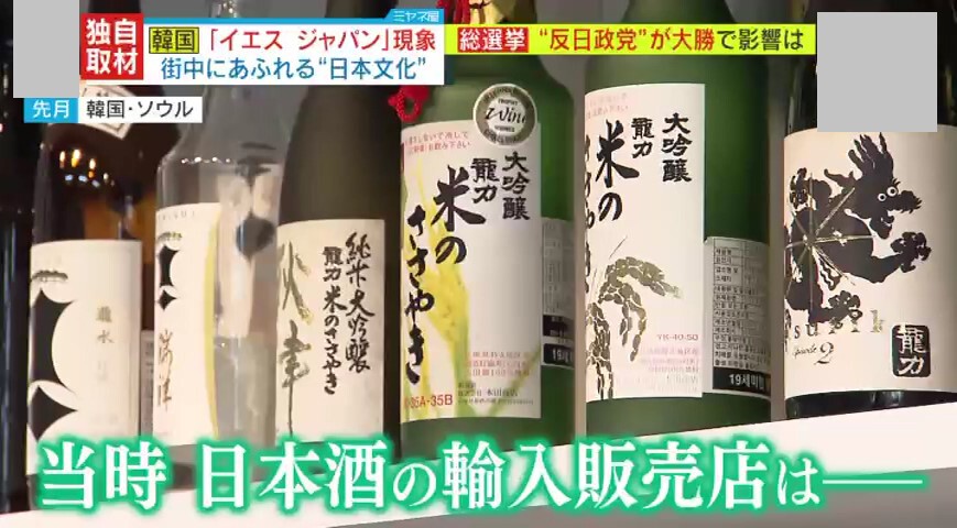 ソウル市内で、30年近く日本の酒を輸入販売する店では…。