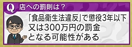 最後に、店への罰則は?亀井弁護士によると、「食品衛生法違反で懲役3年以下、又は300万円の罰金となる可能性がある」ということです。