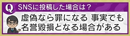 次に、SNSに投稿した場合は?亀井弁護士によると、「虚偽なら罪になる。事実でも、名誉毀損となる場合がある」ということです。