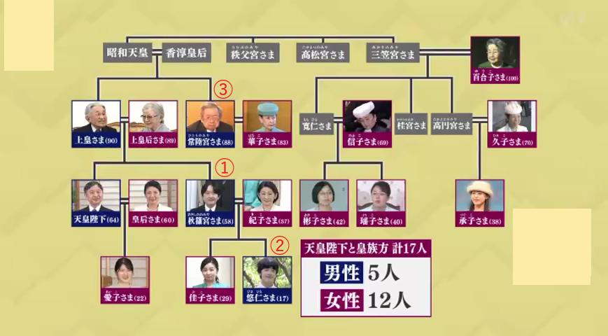 皇位継承資格を持つ男系男子は3人だが、若い世代は悠仁さま一人…高齢化や結婚後の皇籍離脱で皇族人数は年々減少、残された皇族にのしかかる大きな負担