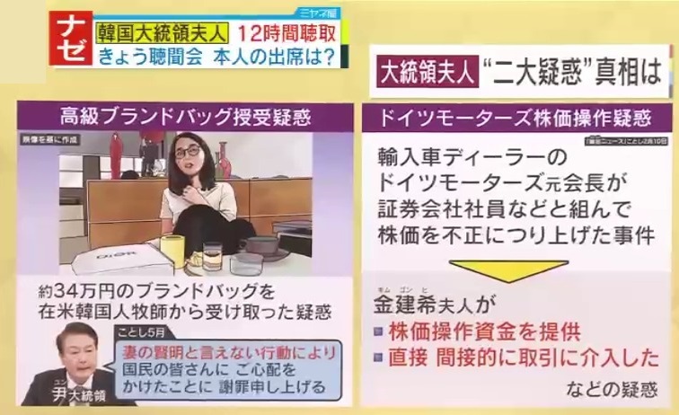 もう1つの疑惑は、『ドイツモーターズ株価操作疑惑』です。『聯合ニュース』によると、輸入車ディーラー『ドイツモーターズ』の元会長が証券会社社員などと組んで株価を不正につり上げた事件です。この事件で、キム・ゴンヒ氏が『株価操作に資金を提供した』『直接・間接的に取引に介入した』などの疑惑が持たれています。