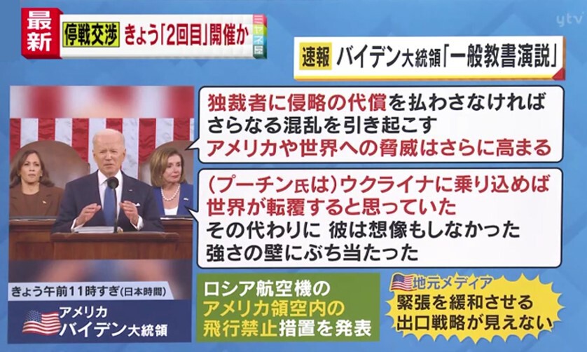 Q.アメリカの「一般教書演説」は通例では国内向けの話をする場所ですが、今回はプーチン大統領に向けたメッセージを出しました。バイデン大統領はどう動くのか、それとも動かないのでしょうか?