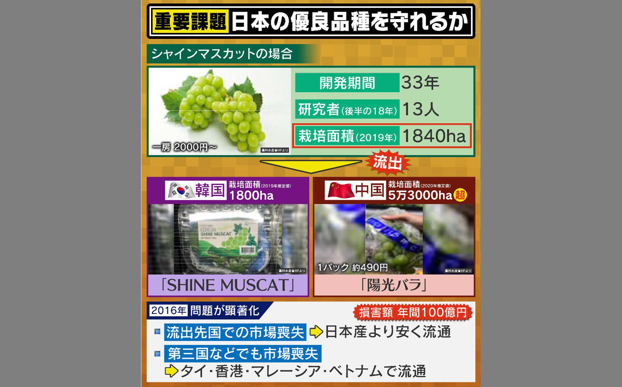 【独自解説】相次ぐブランド農産物の海外流出「シャインマスカット」中国産の価格は4分の1!年間損害額100億円!?“品種泥棒”防ぐ手立ては?