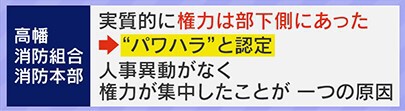 今回の事態を、高幡消防組合消防本部は、「実質的に権力は部下側にあった」としてパワハラと認定。ハラスメントが起きてしまった理由について「人事異動がなく、権力が集中したことが一つの原因」としています。