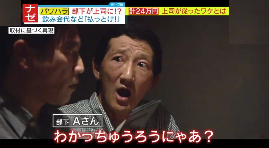実際に何があったかというと、部下のA氏と上司のB氏が同席した飲み会が開かれた際、A氏は上司のB氏に対し「わかっちゅうろうにゃあ~(わかってるだろうな~)」などと遠回しな表現を使い、飲食代金の支払いを強要したといいます。B氏は仕方なく支払ったということです。
