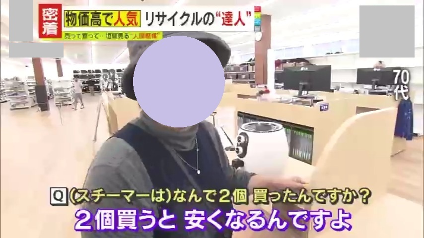 こちらの女性(70代)が持ってきたのは、油を使わないでお肉などを焼くことができるフライヤーと、衣類のスチーマーです。同じものを2個持っているため、1つ新品を持ってきたといいますが…。