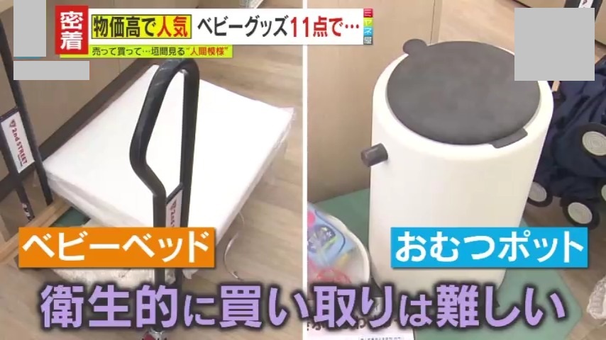 2日前まで娘さんが使っていたベビーベッドに、赤ちゃん用のボールプールなど。中には、お祝いの熨斗(のし)が付いたままのベビーグッズまでありました。