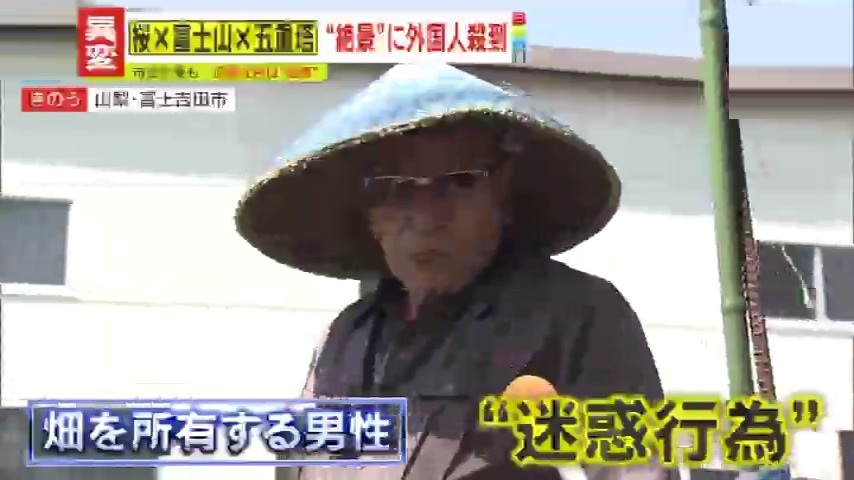 それでも、公園周辺の取材を続けていると、大勢の外国人観光客が歩道に収まりきらず車道に広がり、通行の妨げに。周辺住民は今でも生活に支障をきたしているそうで、公園のすぐそばに畑を所有する男性は、“とんでもない迷惑行為”を受けたといいます。