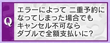 Q.エラーによって二重予約になってしまった場合でも、キャンセル不可ならダブルで全額支払いになりますか?