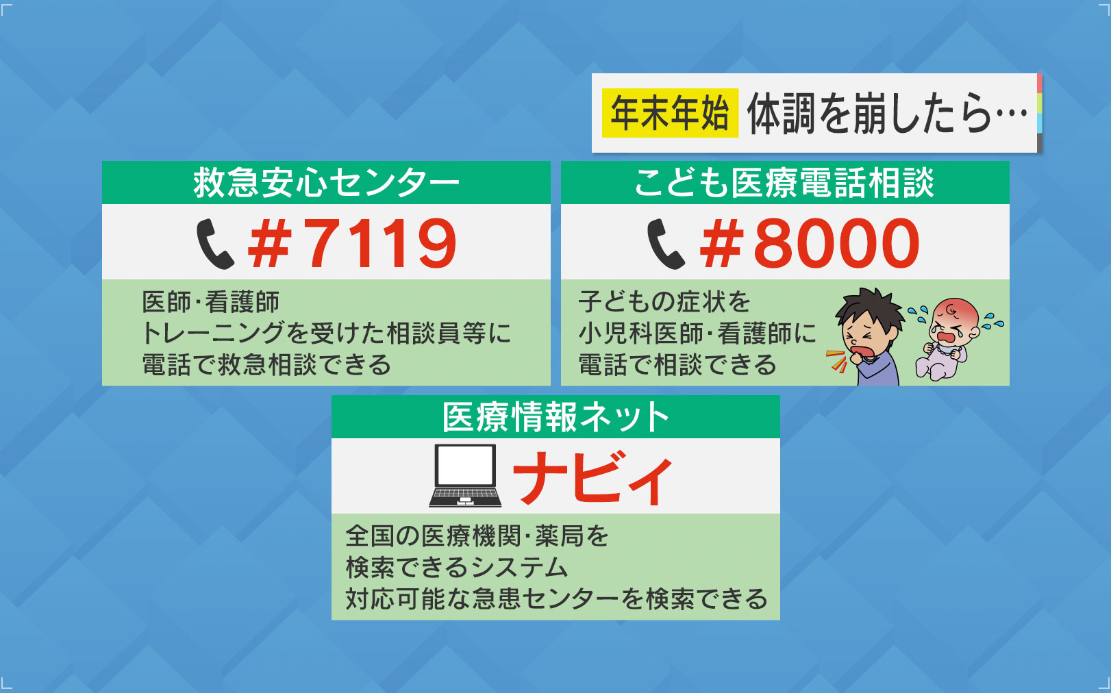 年末年始で医療機関へ中々連絡が取れない方で、もし体調が悪くなってしまった場合…