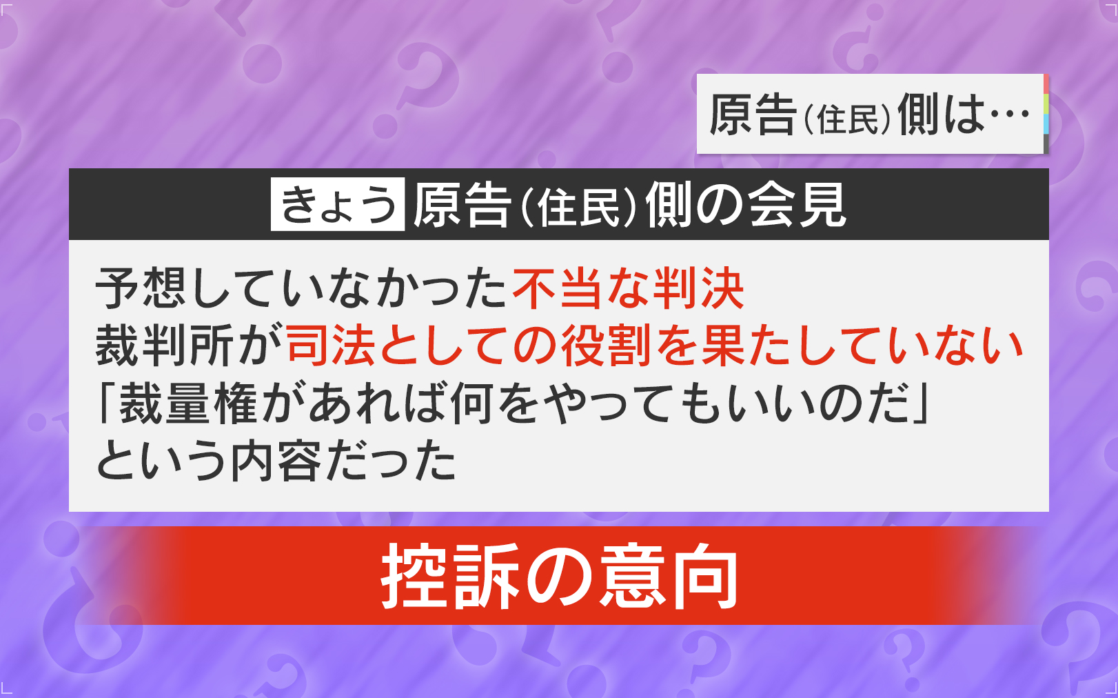 「ハッキリとは書いていないでしょうけど、極端に言うと、“反対している人たちはいるけど、他の人たちは受け入れている施設ではないか”というような見方をしたということです。それが正しいかどうかは、また高裁で争われるでしょう」