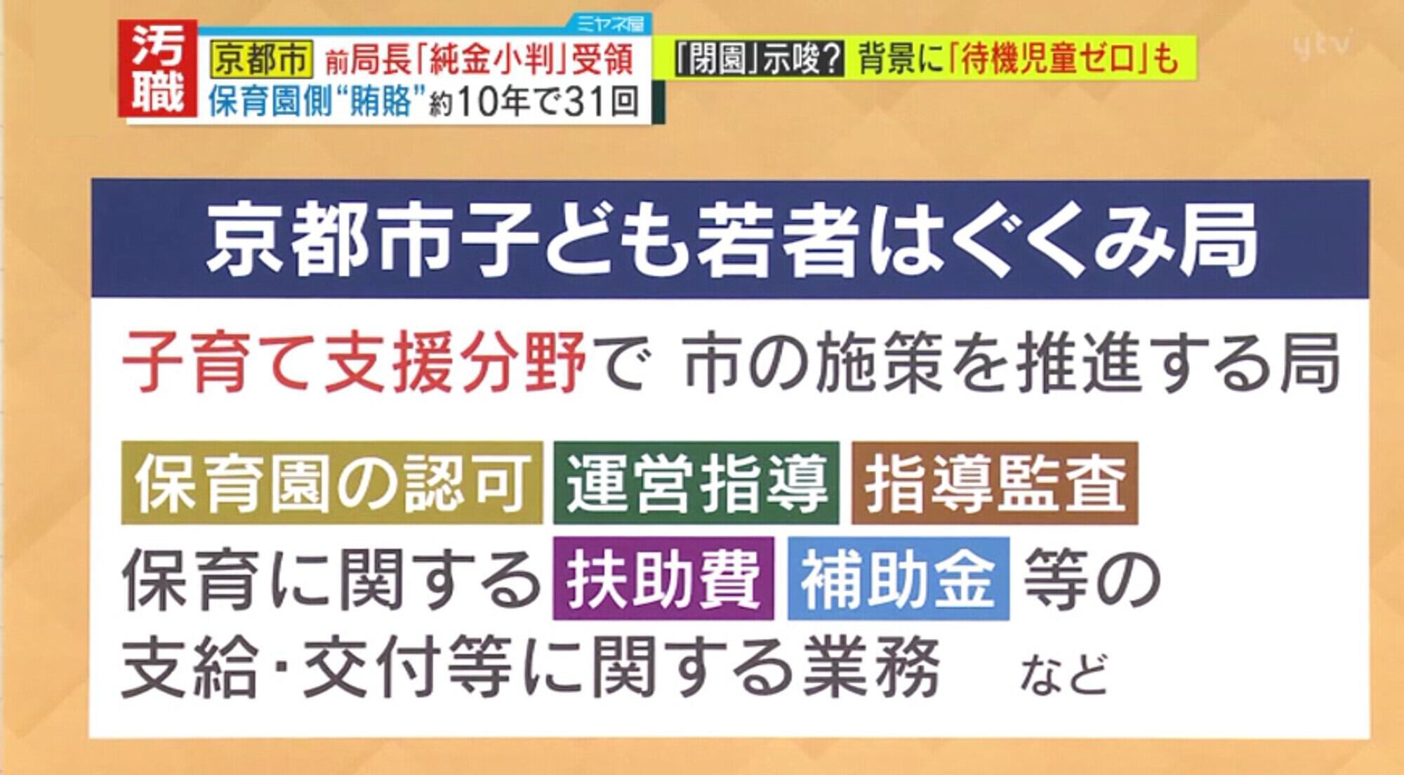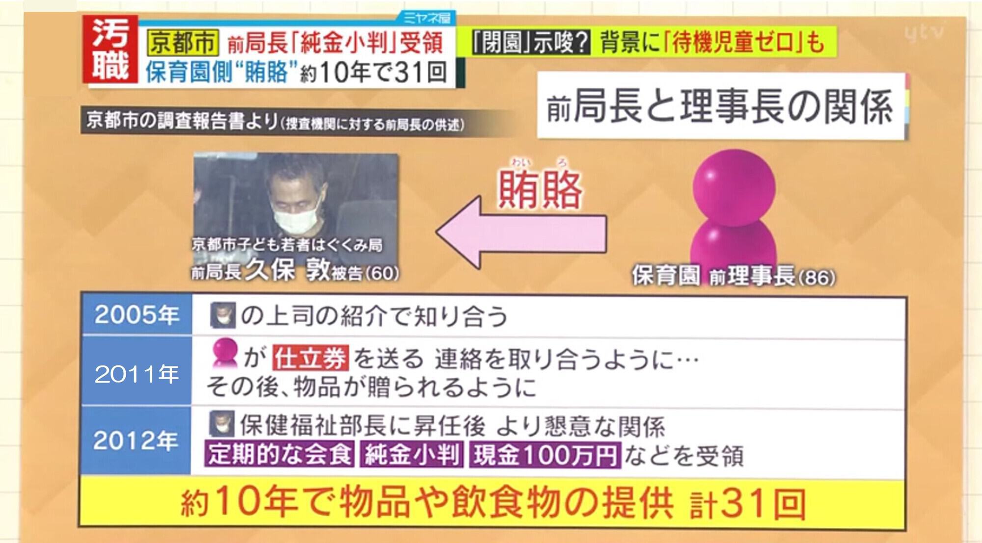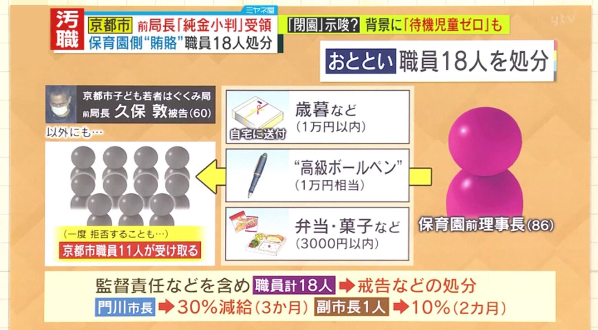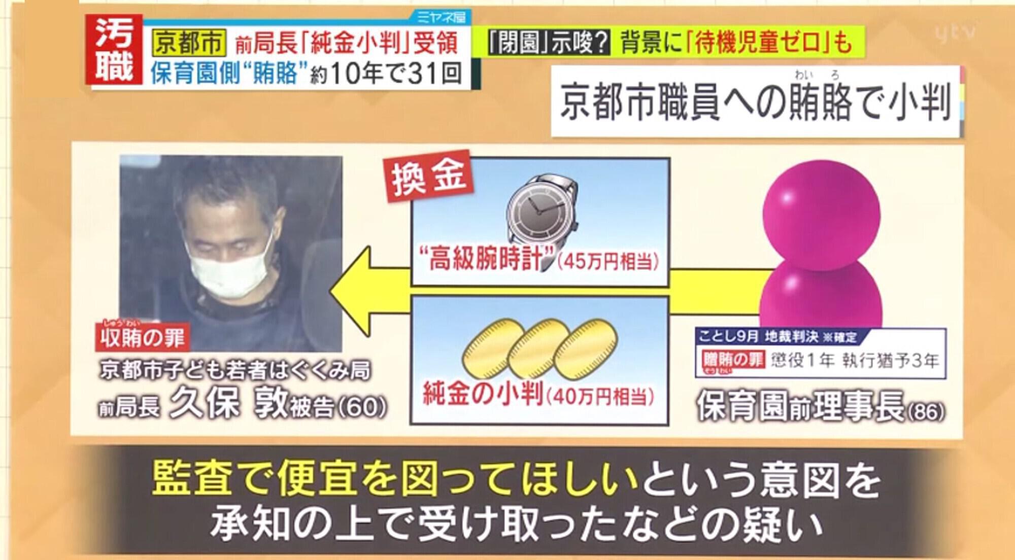 京都市の幹部職員が保育園の前理事長から、賄賂として40万円相当の「純金の小判」を受け取っていた事件。京都市は12月5日、さらに市職員18人の懲戒処分を発表しました。この幹部と前理事長の関係は、約10年にわたっていたということですが、事件の背景には一体何があったのでしょうか?