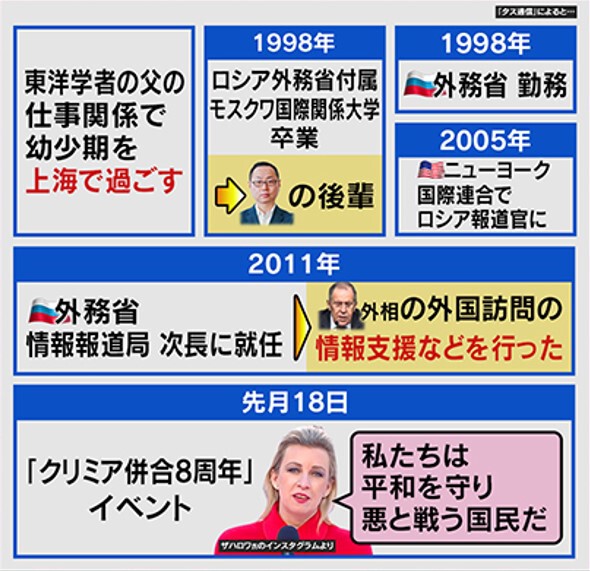 「彼女の前の報道官は、そういう目立つ動きはしなかったんですが、彼女は個性が立っていて、若いころから人気がありました。ただ、今はロシアが悪い事ばかりしているので、なかなか苦しい言い訳が多くなっています」