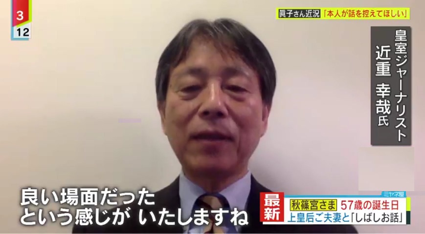 「上皇ご夫妻のお話に関しては、今回の秋篠宮殿下の会見の中でも、いい場面だったという感じがします。お訪ねになること、お招きになることは、コロナ禍の中にあってお控えになっている。多くの国民も、おじいちゃんおばあちゃんの元を訪ねるということをお控えになっているお家も多いと思います、そうした意味で気を遣われていて、散歩の途中に外で会われたときにお話をなさっている、感染のリスクの少ないところでお話しになっているんだな、ということが分かりました」