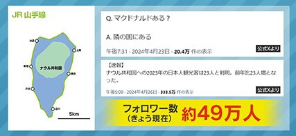 実は、ナウルの公式Xは今までも自虐投稿で度々話題なっています。「ナウルは山手線に入りますか」という質問に、「入る」。「マクドナルドある?」という問いには「隣の国にある」。さらに、「【速報】ナウル共和国への2023年の日本人観光客は23人と判明。前年比23人増となった」などと投稿していて、2024年6月6日現在、フォロワー数が約49万人に上るといいます。