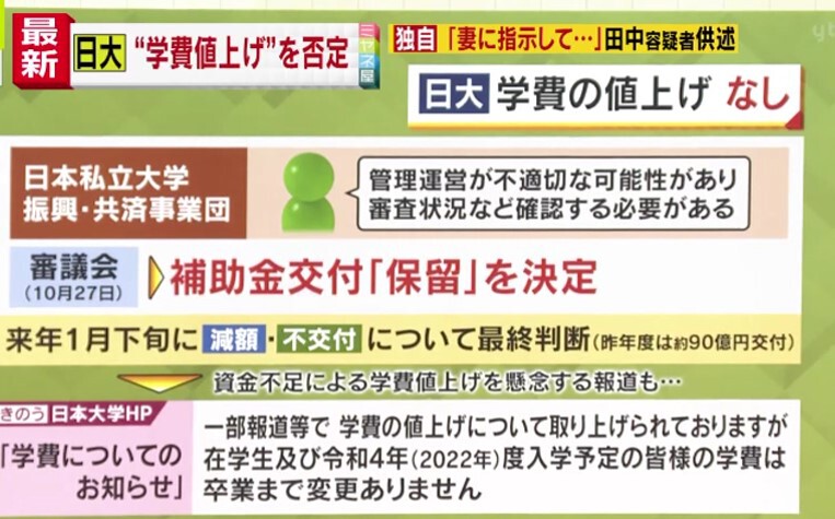 「そうですね。日本大学って、実は資産が3000億円ある大学なんです。だから本来は、学費値上げなんて必要ないんです。ところが客観的データとして、過去10年間で2回の補助金カットの処分を受けていまして、それを受けて学費を値上げしている。だから本来であれば、先週の金曜日の記者会見のときに、『過去は学費を値上げをしていました、だけど今回の不祥事では、うちの資産を売却してでも学費は値上げしません、学生をちゃんと守ります』と、加藤学長が言うべきだったんですが、それを言っていないというのが、生焼けの記者会見の象徴的な場面だったと見ています」