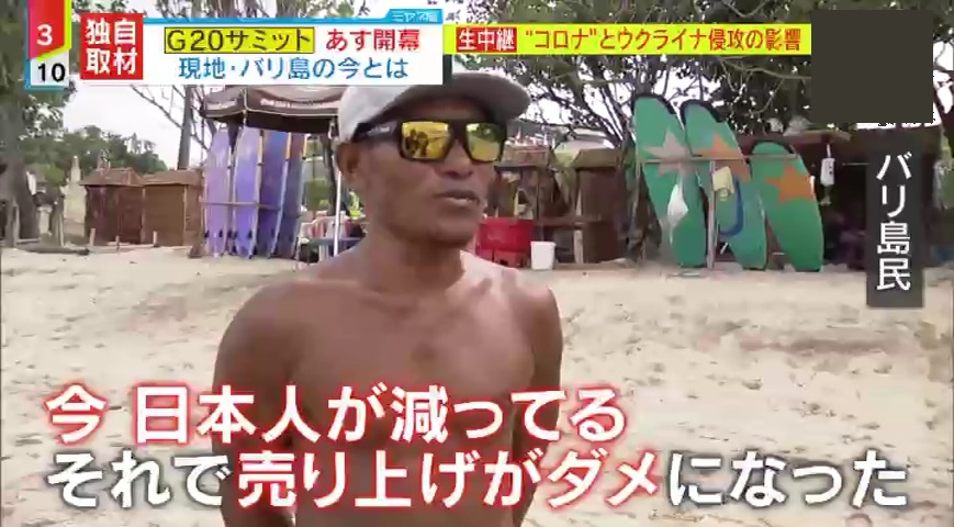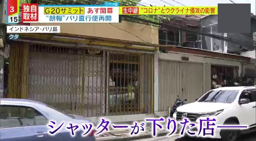 G20の会場から約13km離れた、人気観光地のクタ地区。バリ島は“コロナ”の影響で観光客が激減したということで、クタ地区のメインストリートでは、シャッターが下りている店が多く見られました。開いていた観光客向けの美容サロンで、オーストラリアからの観光客と店員に話を聞いてみると…