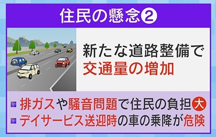 ■『住民の懸念』②緑地帯を分断して幹線道路に接続…騒音問題や事故の危険は?