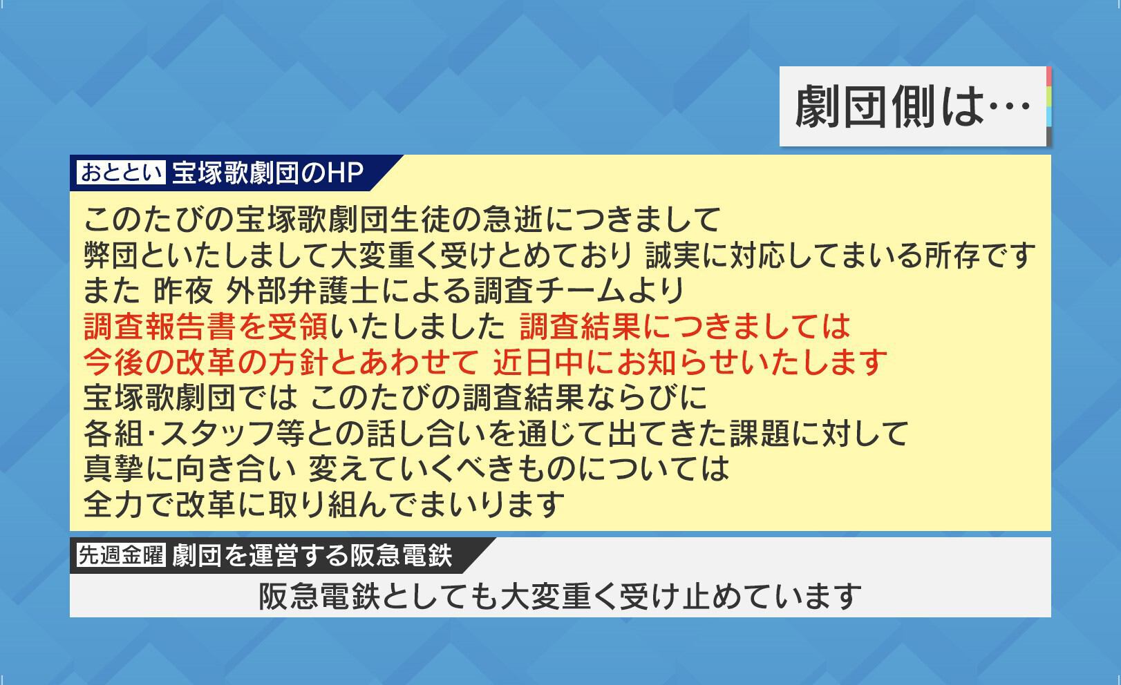 劇団は、ホームページで「調査結果につきましては、今後の改革の方針とあわせて、近日中にお知らせいたします」としています。