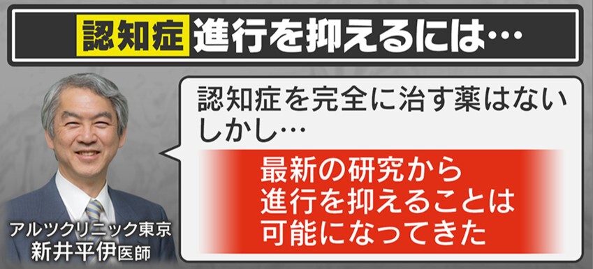 新井医師は、「認知症を完全に治す薬はない。しかし、最新の研究から進行を抑えることは可能になった」といいます。