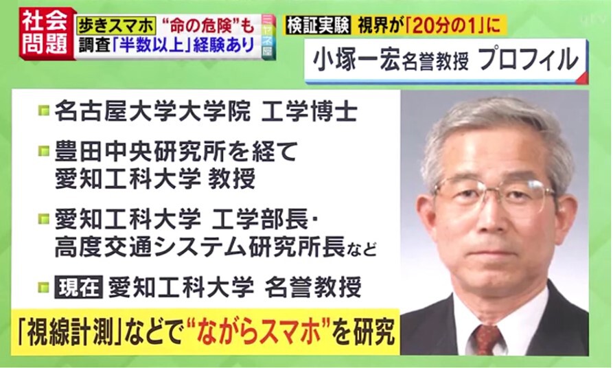 公共の場所でスマートフォンの画面を見つめながら歩く、いわゆる“歩きスマホ”で救急搬送される事例が相次ぎ、いま問題になっています。中には死に至るケースも。ある日突然、被害者にも加害者にもなり得る“歩きスマホ”に有効な対策はあるのか。“ながらスマホ”を長年研究している、愛知工科大学名誉教授の小塚一宏(かずひろ)先生が独自解説します。
