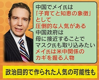 一方、デーブ氏は「中国政府は母に接近することでマスク氏も取り込みたい。メイ氏は米中関係のカギを握る人物」だとして、政治目的で作られた人気の可能性を指摘しています。